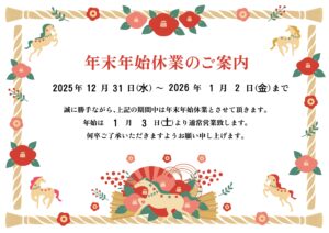 年末年始休業のお知らせ